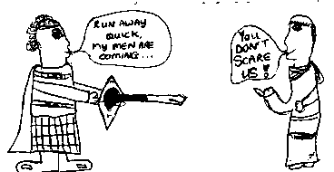 His wife asked him what was the matter. When he told her about his worries she said," Take your servants and kill the men with your swords!" Boia thought this was a good idea and set off with his men.